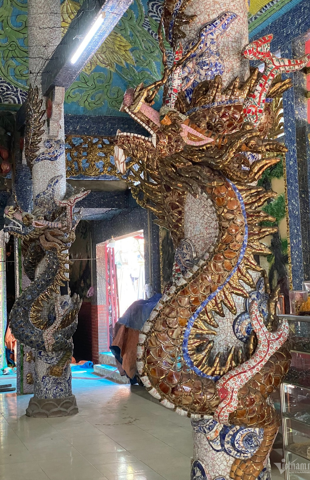 Những con rồng cuộn mình trên những trụ cột của ngôi miếu linh thiêng với những thiết kế tinh xảo, bắt mắt.