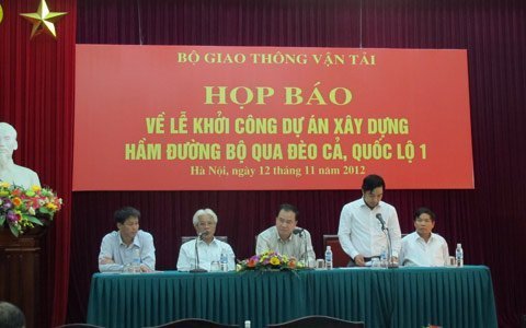 | Bộ GTVT tổ chức họp báo thông báo khởi công dự án xây dựng hầm đường bộ qua Đèo Cả QL 1A. |