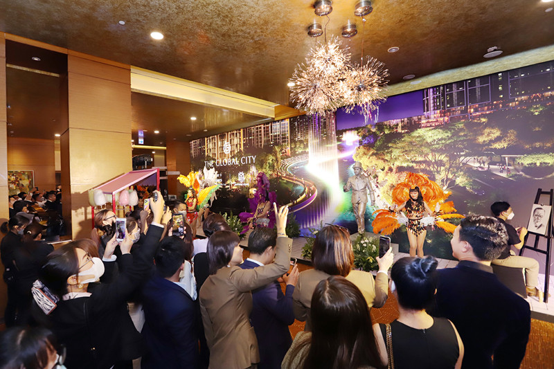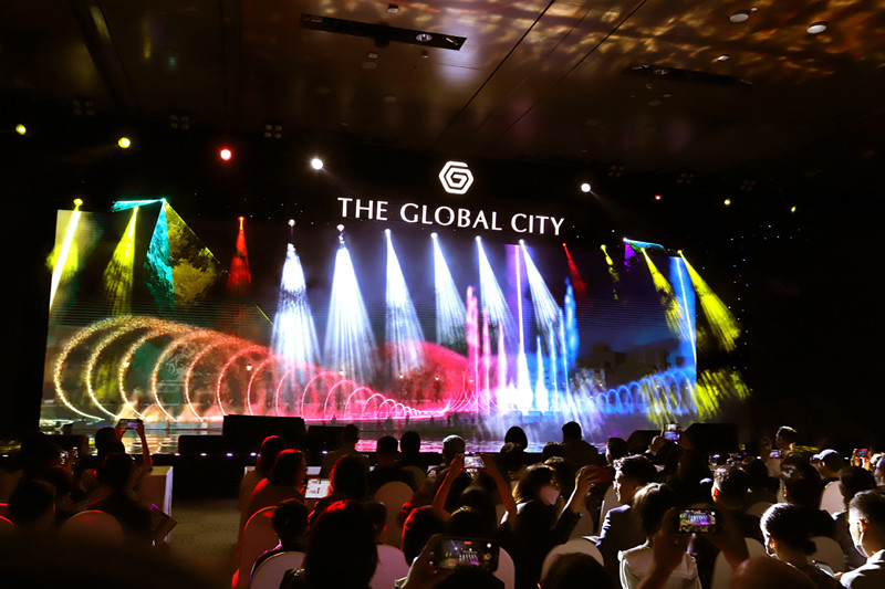 Sảnh đón tiếp được thiết kế mô tả khu vực công viên trung tâm của dự án The Global City với khu nhạc nước đẹp như mơ, nằm giữa hai bên những dãy nhà phố - biệt thự và cây xanh. Song song đó, còn có phần nhạc nước được thể hiện bằng video mô phỏng và hiệu ứng âm thanh ánh sáng bắt mắt.