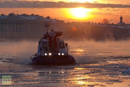 Ông già tuyết tới đảo Vasilyevsky để thắp sáng cây Năm Mới tại St Petersburg. (Ảnh: Ria Novosti)