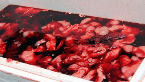 | Số lòng lợn, gà qua sơ chế bị lực lượng chức năng bắt giữ |