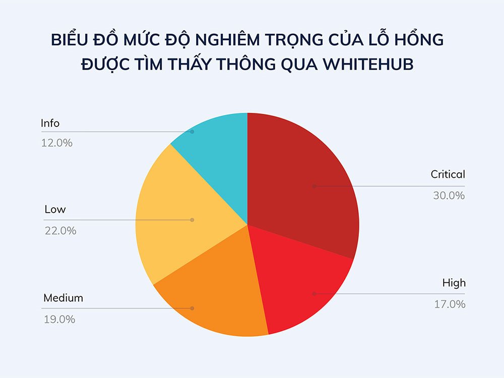 Trong số hơn 400 lỗ hổng được tìm thấy thông qua nền tảng WhiteHub, có tới 30% thuộc loại nghiêm trọng. |