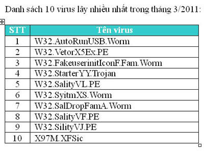 tháng qua là W32.AutoRunUSB.Worm đã lây nhiễm trên 292.000 lượt máy
