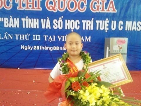 | Em Trần Lê Kiên - Giải Nhất cấp độ Trung cấp B môn Bàn Tính và Số học Trí tuệ U C MAS Việt Nam năm 2012 |