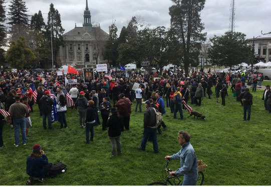 Những người tham gia "Cuộc tuần hành vì Tổng thống Trump" để biểu thị ủng hộ với Tổng thống, đã gặp nhóm chống đối "Bằng bất kỳ biện pháp nào cần thiết" ở khu Berkeley vào chiều 4/3 (giờ địa phương).