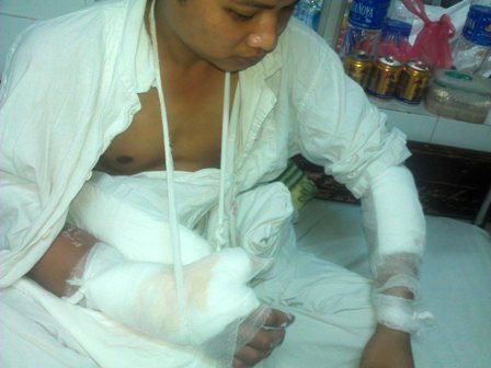Trên đường chạy trốn, anh Trung bị vấp ngã xuống lòng đường. Đám trai làng hung hãn đuổi tới chém 1 nhát làm anh đứt lìa bàn tay phải cùng 2 nhát rất sâu ở tay trái khiến nạn nhân đổ gục tại chỗ.