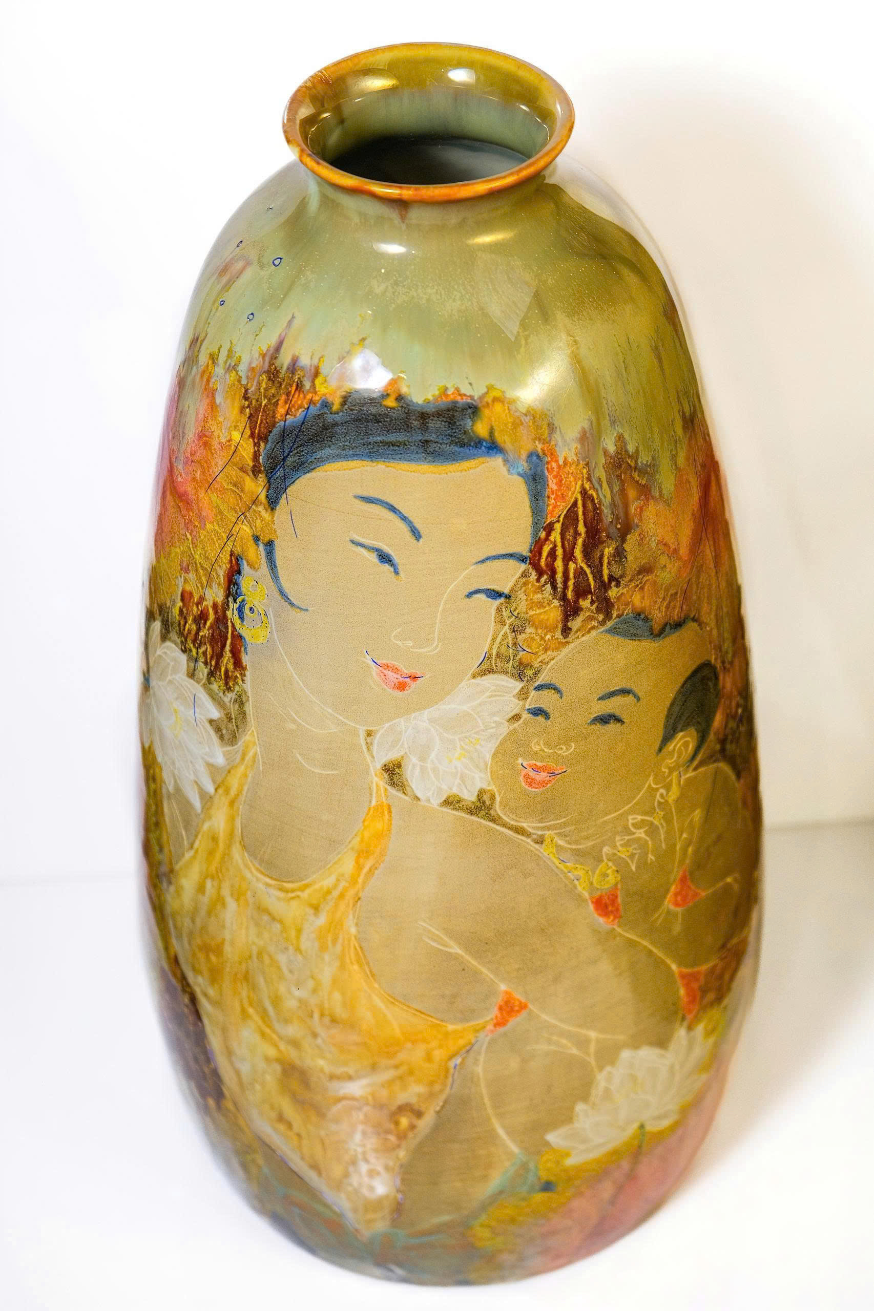 Điểm nhấn đặc biệt trong triển lãm là tác phẩm thể hiện hình tượng người mẹ đang mang thai - một tạo hình khối kết hợp hội họa gốm được đánh giá cao bởi giới chuyên môn. Họa sĩ Dương Văn Thành nhận xét: "Đây là một tác phẩm gốm nghệ thuật độc đáo, giàu tính biểu tượng và được tìm tòi công phu. Những đường rạn nứt trên cơ thể người mẹ không chỉ mang tính thẩm mỹ mà còn là những mạch sống vàng nuôi dưỡng sinh linh bên trong. Hình ảnh em bé nằm trong tư thế thai nhi được bao bọc bởi những cánh sen trắng, thể hiện sự che chở, ôm ấp của mẹ một biểu tượng thiêng liêng và đẹp đẽ".