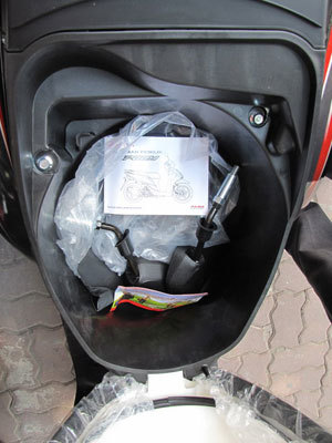 Cốp xe khá rộng, có thể để vừa hai chiếc mũ nửa đầu
