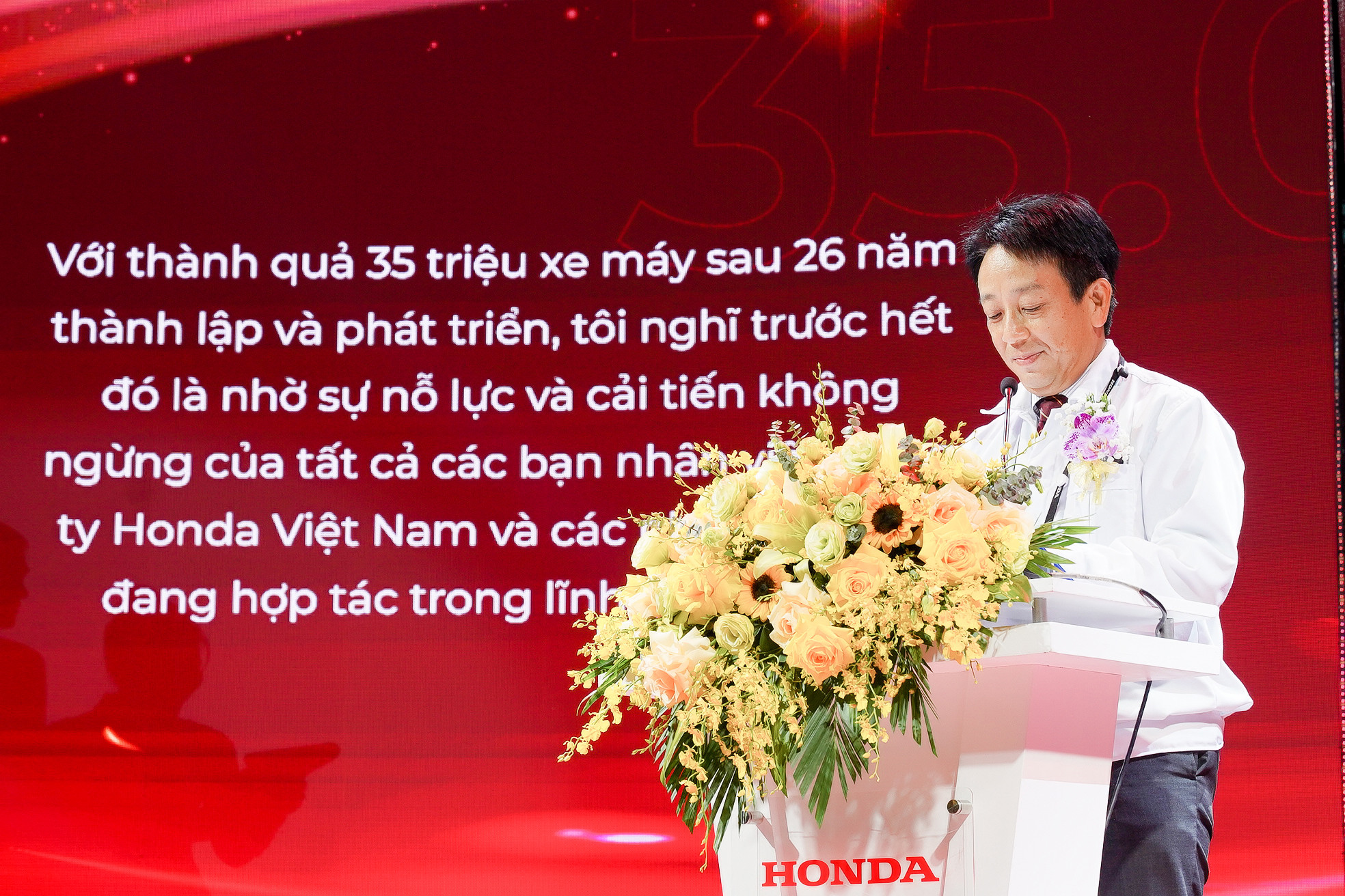 Được thành lập vào năm 1996, Honda Việt Nam đã đi qua những dấu mốc đáng nhớ như: kỷ niệm chiếc xe thứ 5 triệu vào tháng 7/2008; đạt sản lượng 10 triệu xe máy năm 2011; chào mừng chiếc xe máy thứ 15 triệu và khánh thành nhà máy sản xuất xe máy thứ ba ở Việt Nam vào năm 2014; cán mốc xuất xưởng 20 triệu xe máy vào năm 2016; 25 triệu năm 2018; đạt 30 triệu xe máy vào tháng 10/2020… Đến nay, HVN đạt dấu mốc xuất xưởng 35 triệu xe máy. Như vậy, sản lượng cộng dồn của HVN đã tăng 5 triệu xe chỉ sau hơn 2 năm, dù trong giai đoạn dịch bệnh Covid-19 ảnh hưởng nặng nề đến sản xuất kinh doanh. Cột mốc này đánh dấu sự phát triển mạnh mẽ của HVN và cũng là minh chứng cho cam kết đầu tư lâu dài, bền vững của Honda ở Việt Nam.