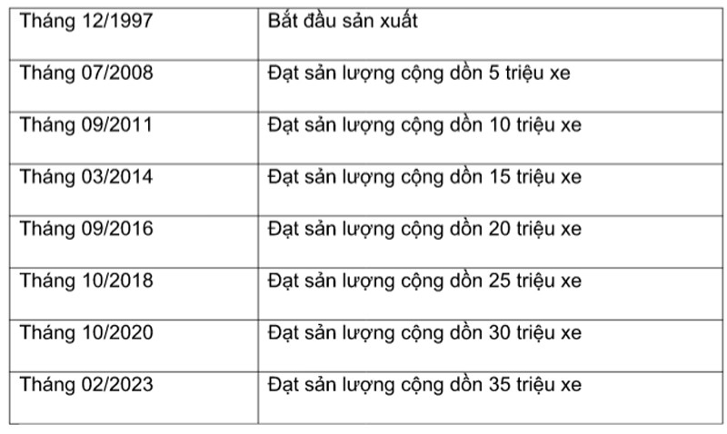Các dấu mốc sản lượng xe máy của Công ty Honda Việt Nam ![]() |