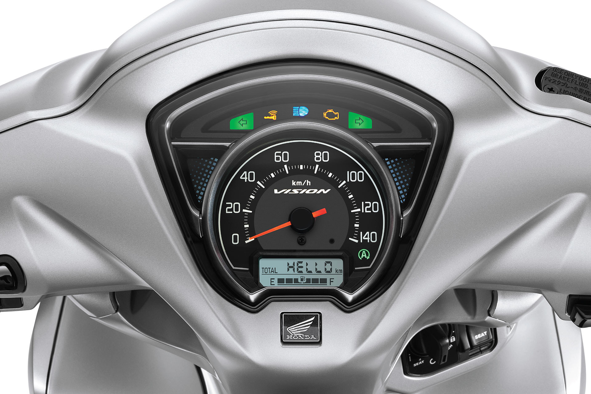 Thiết kế tổng thể của Honda Vision 2026 được lấy cảm hứng từ mẫu xe tay ga cao cấp SH với mặt đồng hồ kết hợp giữa analog và LCD. Đèn định vị LED hiện diện từ bản Cao cấp trở lên. Riêng bản thể thao sử dụng vành trước 16 inch, các bản còn lại chỉ dùng vành 14 inch.