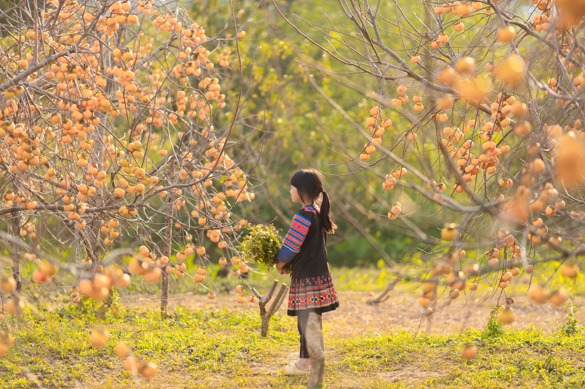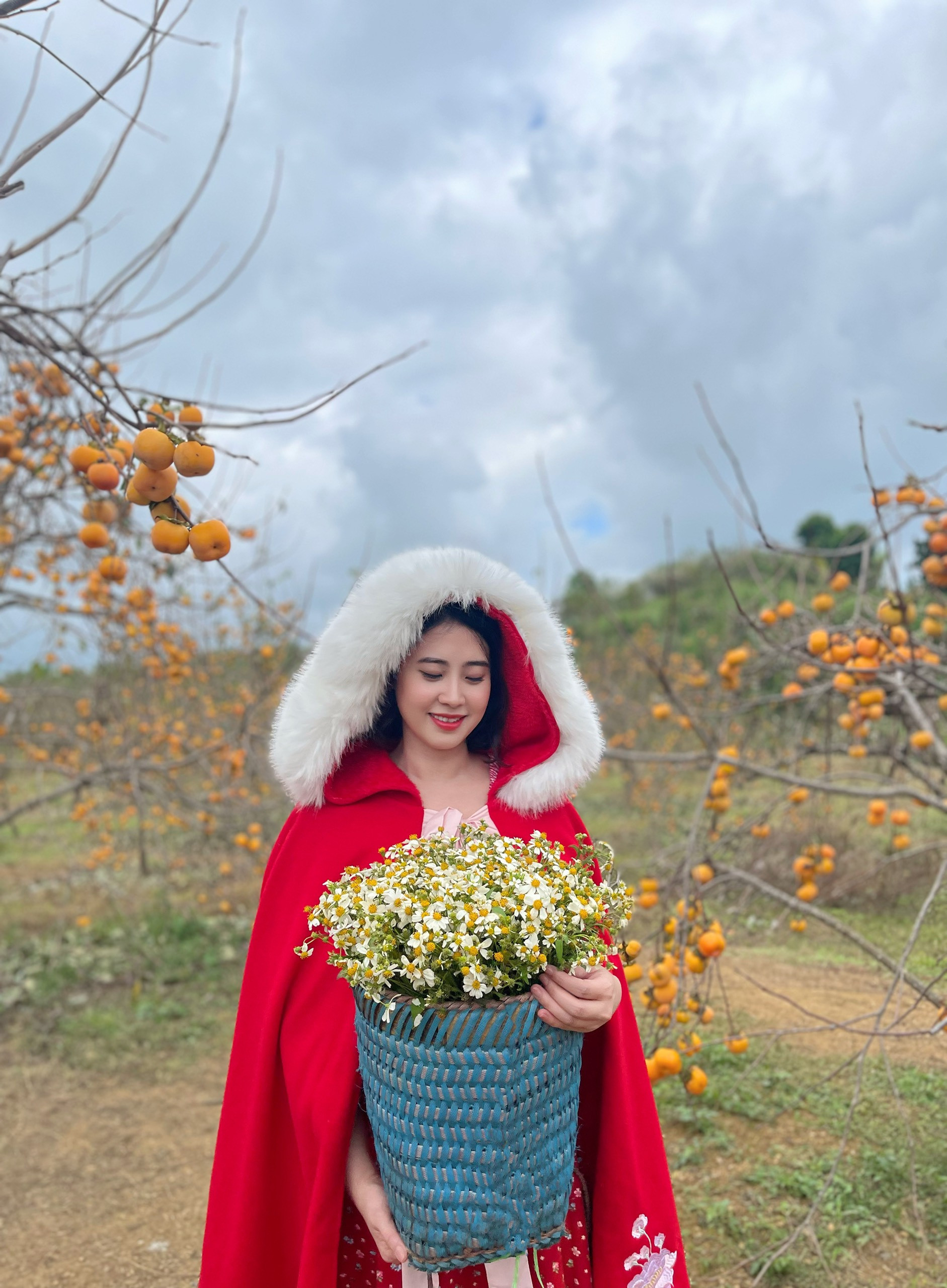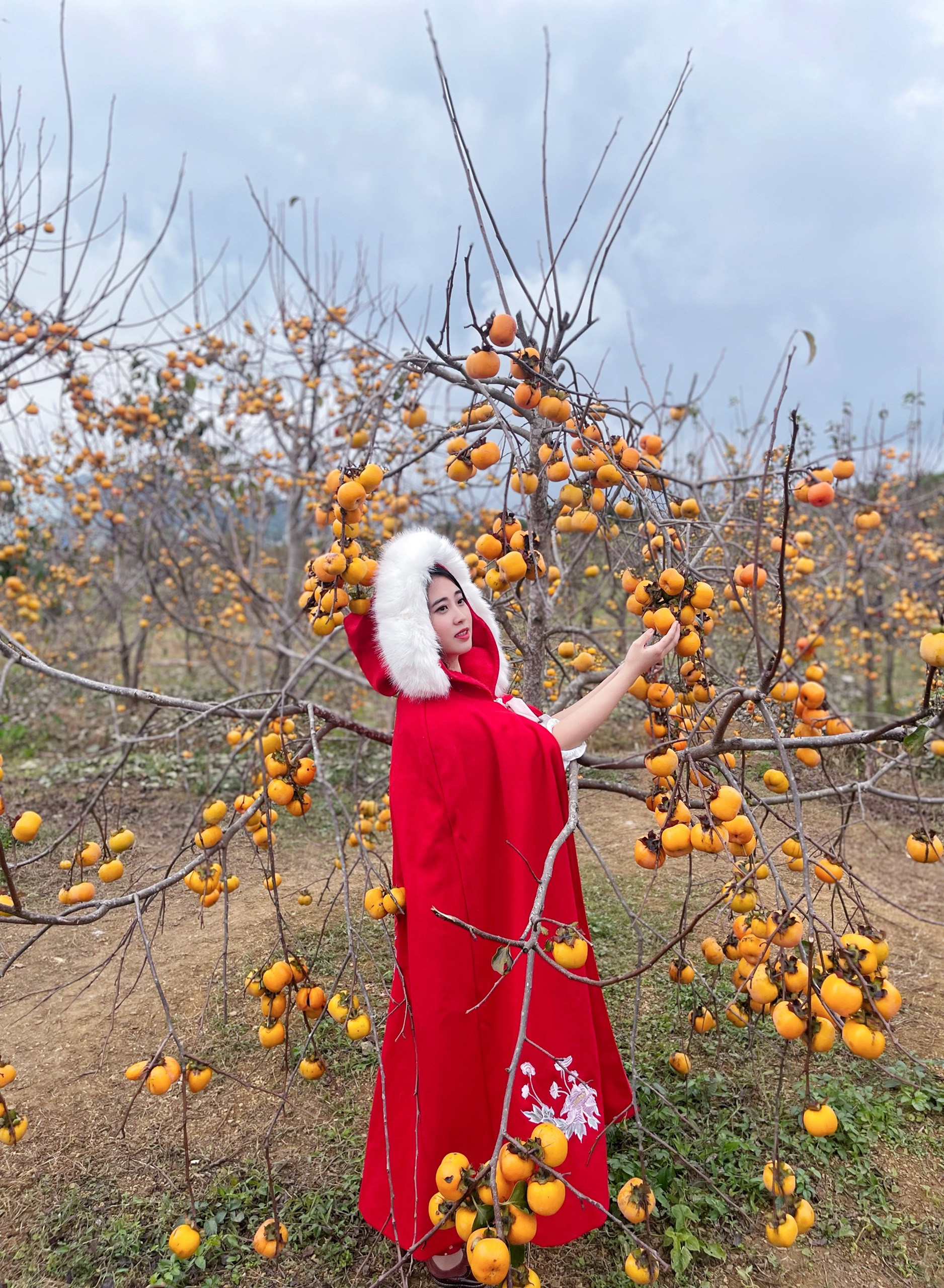 Những trái hồng căng bóng, vàng óng, lúc lỉu trên cành trở thành khung cảnh chụp hình lý tưởng, thu hút du khách thập phương đến Mộc Châu dịp cuối thu.