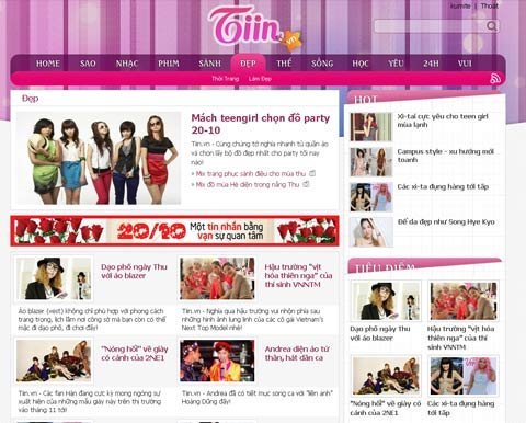 Tiin.vn là trang tin dành riêng cho giới trẻ với hai mảng thông tin chủ đạo là đời sống giới trẻ, văn hóa giải trí. Vẫn trung thành với tiêu chí khác biệt, Tiin.vn là một tân thủ “lạ và độc” giữa hàng loạt website dành cho giới trẻ rất phong phú và đa dạng tại Việt Nam.