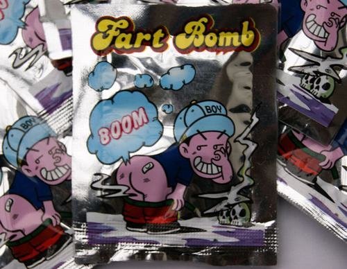 Bom thối do Trung Quốc sản xuất. Chúng có 2 loại với tên gọi khác nhau là Fart bag và Fart bomb. Bề ngoài, bom thối trông giống một túi kẹo hoặc túi bim bim nhỏ. Hình ảnh trên bao bì rất sinh động, in hình một cậu bé chổng mông với chiếc quần bị rách và chữ “bom” cũng được in ngay phía trên.