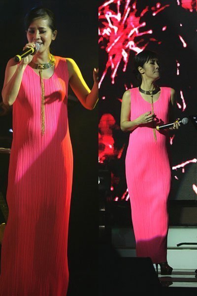 | Hồng Nhung trong chương trình ca nhạc chung với ca sĩ Thanh Bùi tại phòng trà M&T tại Sài Gòn hồi tháng 1/2012 |