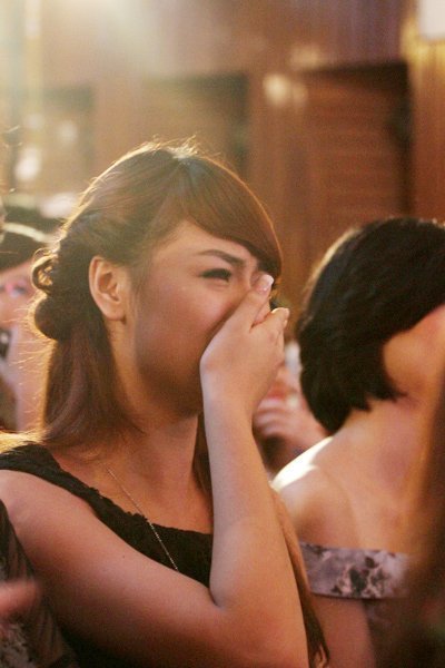 | Sợ không kìm chế được cảm xúc, cô người mẫu 9x đã phải dùng cả bàn tay để che miệng. Và chưa hết phần biểu diễn của Tuấn Hưng sau đó, Hồng Quế đã phải chạy ra ngoài để lấy lại bình tĩnh. |