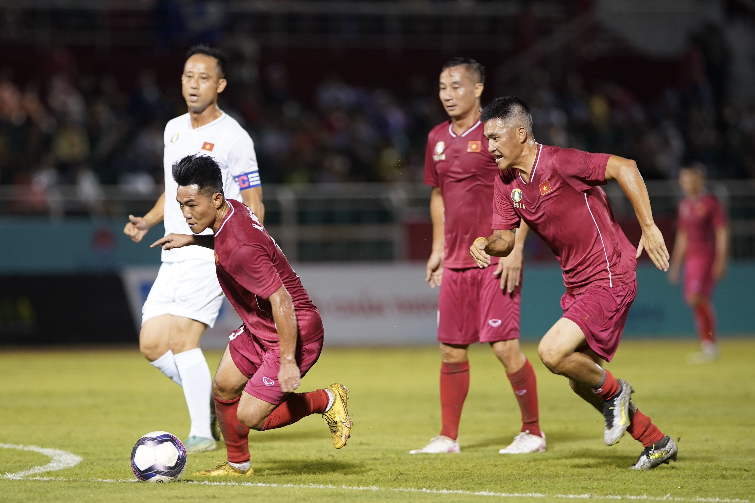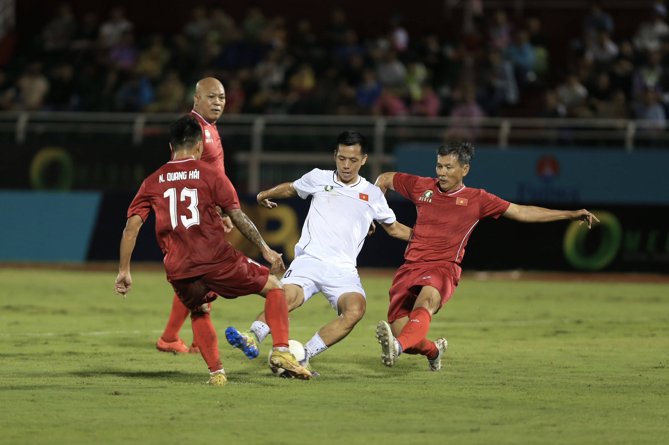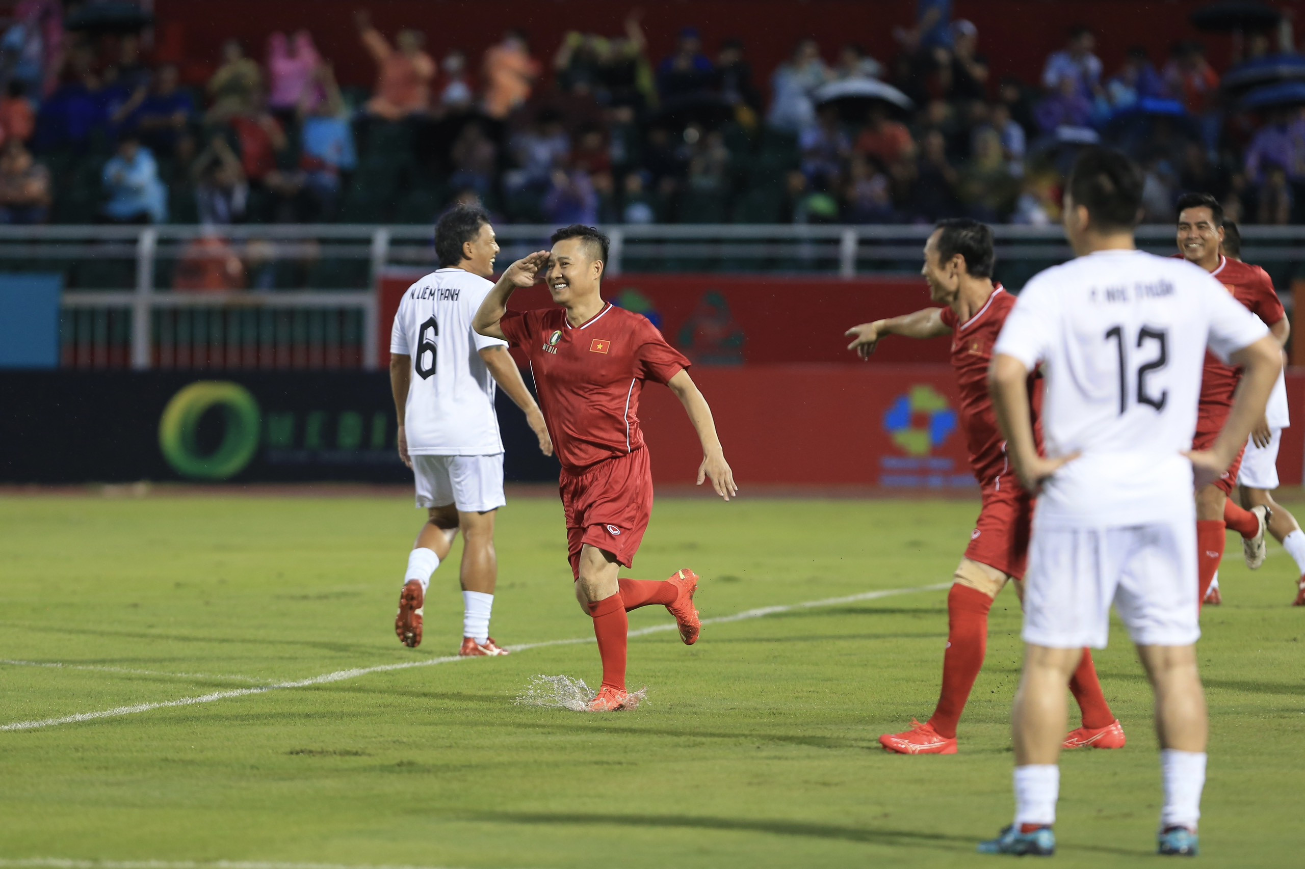 Hồng Sơn và Quang Hải tái hiện những khoảnh khắc không thể quên ở Tiger Cup 1998 và AFF Cup 2008 khi ghi bàn trong trận cầu Thế hệ vàng trên sân Thống Nhất.