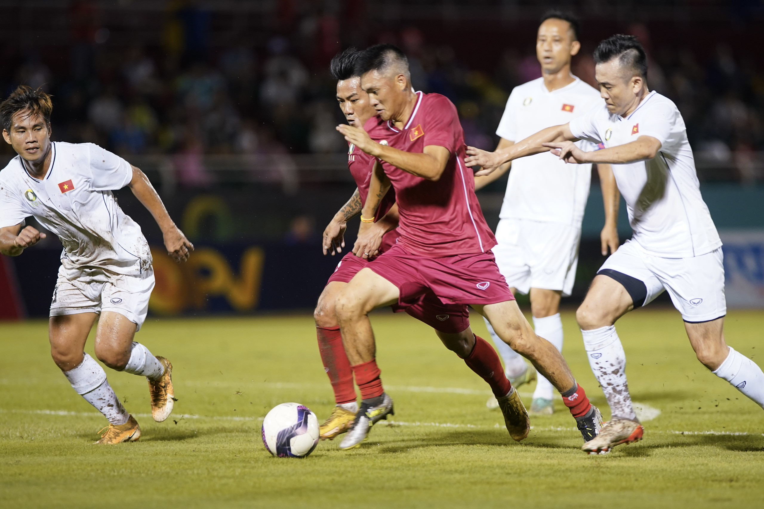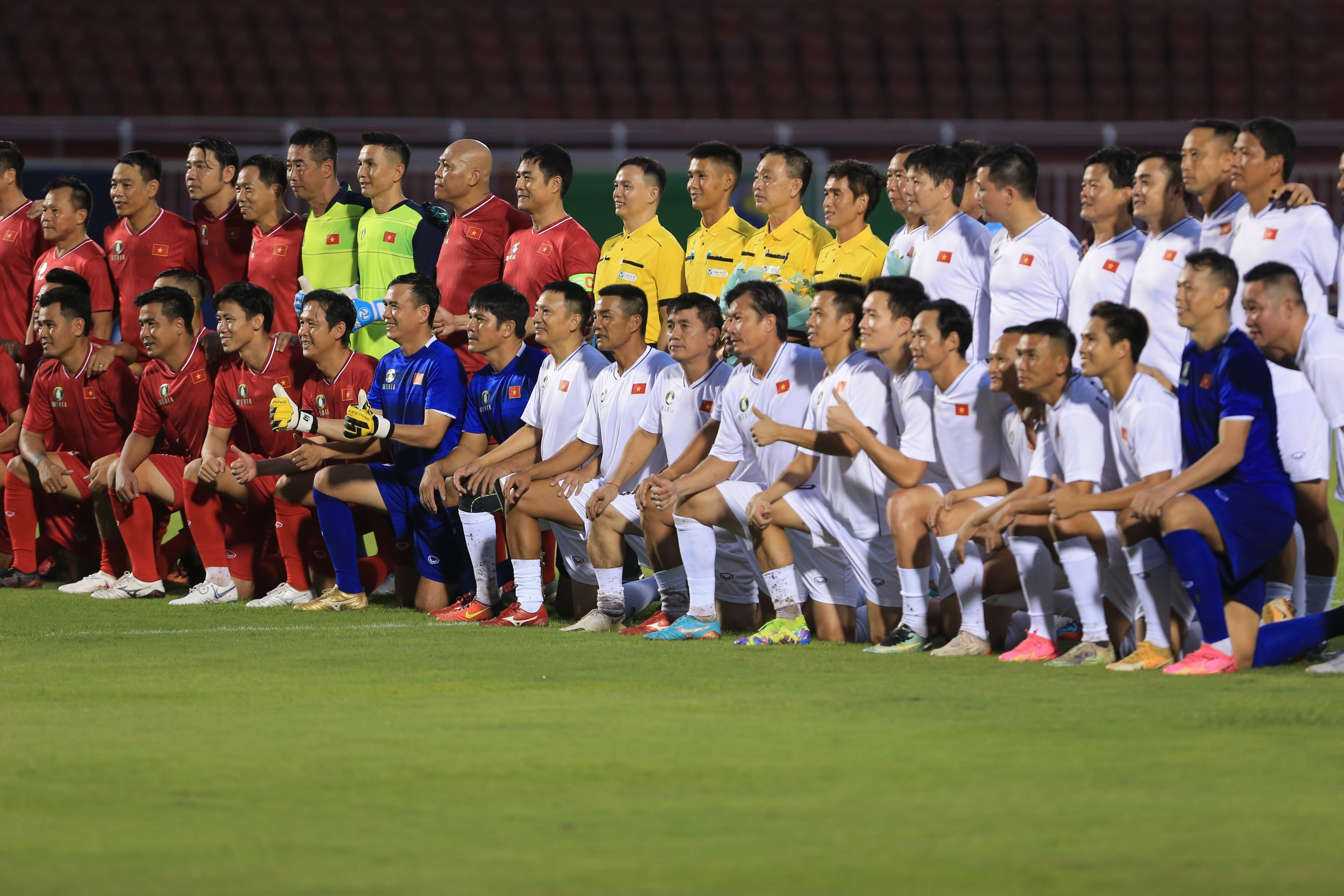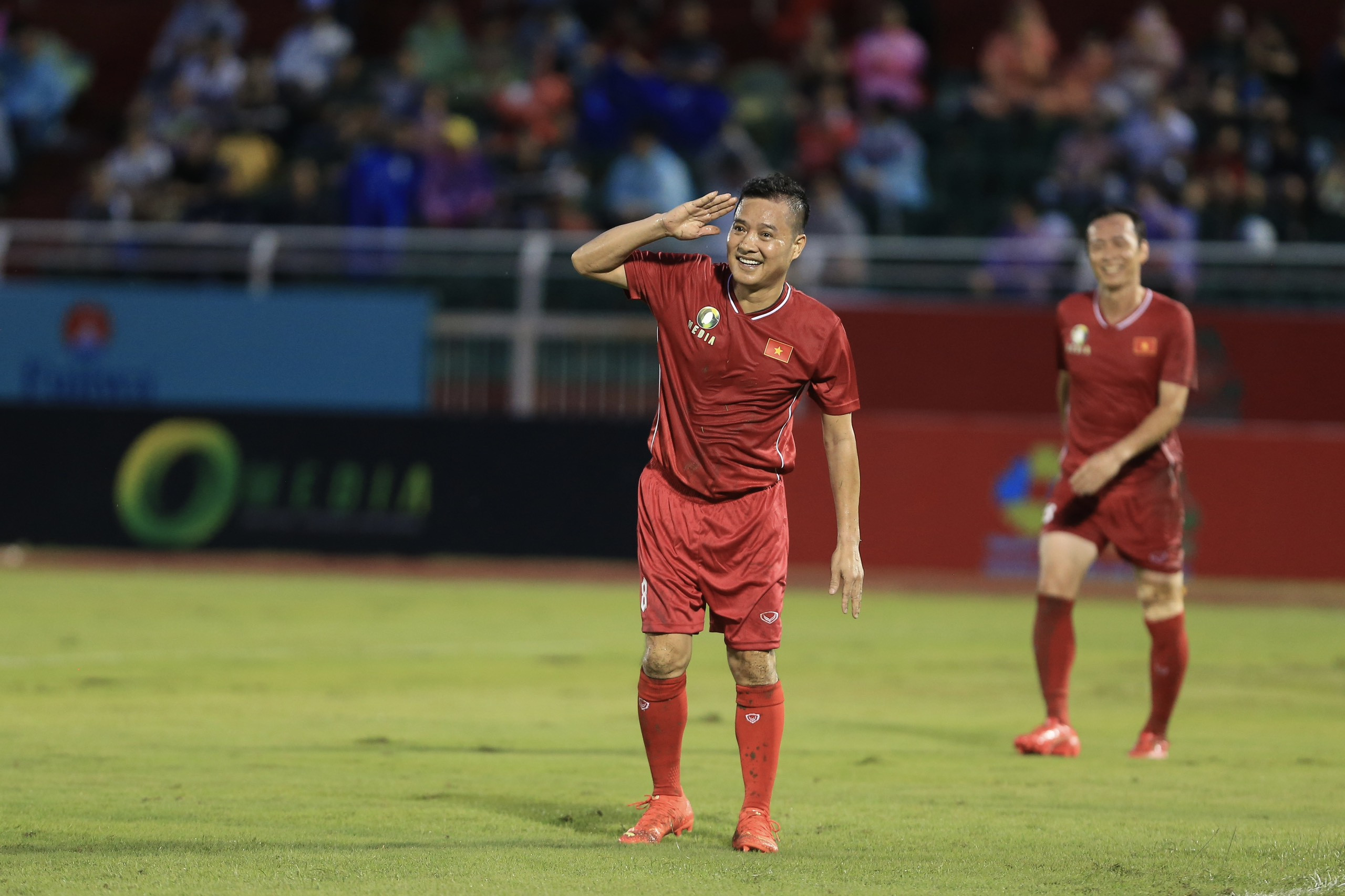Hồng Sơn và Quang Hải tái hiện những khoảnh khắc không thể quên ở Tiger Cup 1998 và AFF Cup 2008 khi ghi bàn trong trận cầu Thế hệ vàng trên sân Thống Nhất.