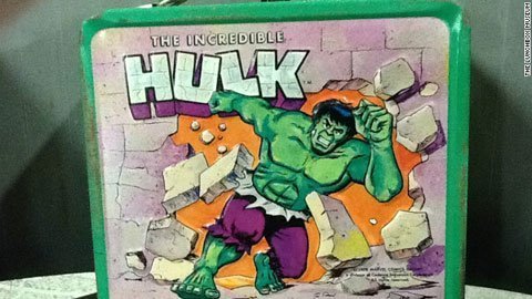 | Nhà cung cấp hộp cơm Aladdin Industries đã cho ra đời mẫu sản phẩm với những hình ảnh từ bộ phim "Incredible Hulk" (1978) khi loạt phim này đang nổi tiếng vào thời đó. |