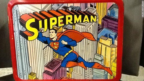 | Hộp cơm kim loại “Superman” ra đời năm 1967. Hộp cơm kim loại truyền thống chỉ không được sử dụng nữa khi người ta lo ngại rằng những mảnh kim loại sẽ làm bọn trẻ bị thương. |