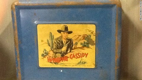 | Hộp cơm “Hopalong Cassidy” từ năm 1950 rất phổ biến với những đứa trẻ thời hậu chiến. |