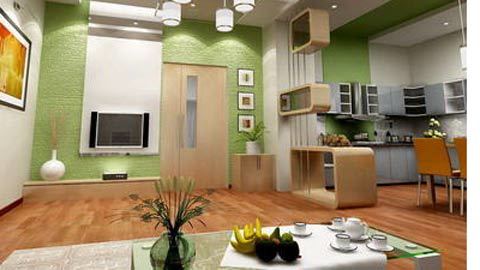 cửa hay đặt các vách ngăn nhỏ tách riêng bếp và phòng khách, hoặc vách chắn ngang