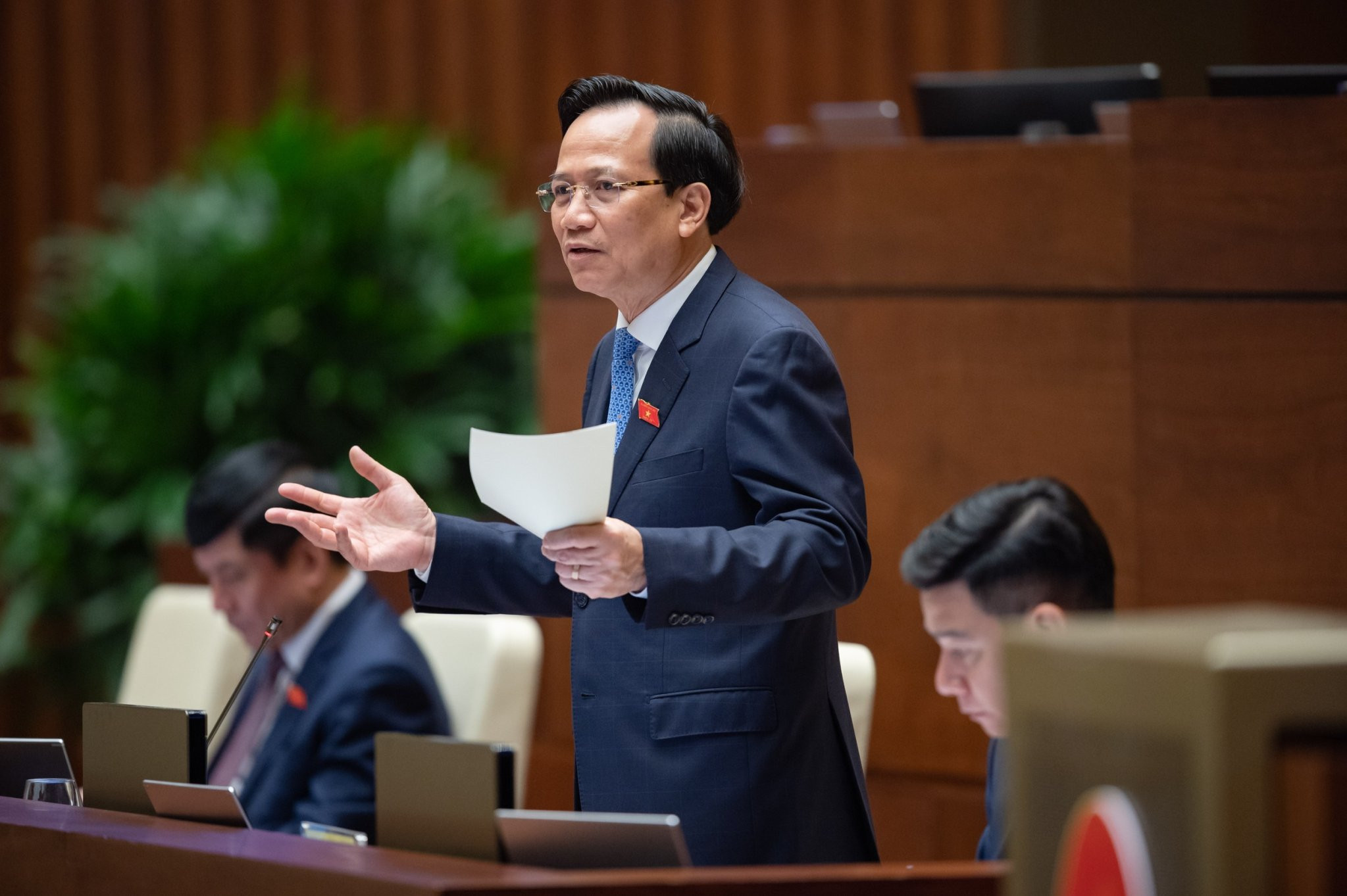 Bộ trưởng Đào Ngọc Dung trả lời nhóm câu hỏi đầu tiên.