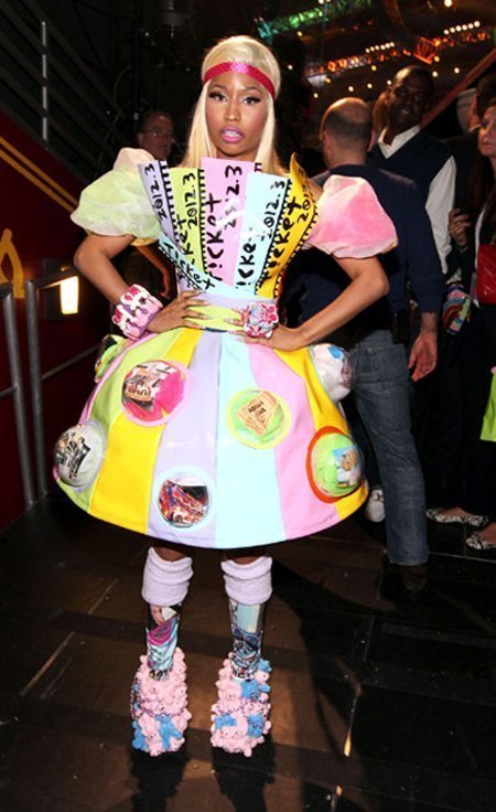 Ngay từ khi bước chân vào showbiz, cô nàng rapper này đã định hình cho mình phong cách “tắc kè hoa” sặc sỡ và vô cùng bắt mắt. Xuất hiện ở bất cứ sự kiện nào, Nicki Minaj cũng không khỏi khiến mọi con mắt đổ dồn vào mình những bộ trang phục “từ trên trời rơi xuống”.