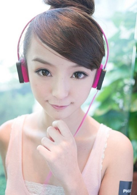 Ngắm hotgirl xinh như búp bê làm dáng với tai nghe sành điệu.