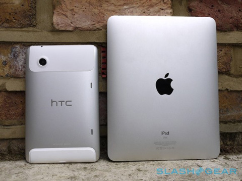 Hai sản phẩm máy tính bảng của HTC và Apple. |