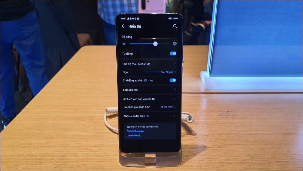 EMUI 10 cũng tích hợp chế độ đêm (Dark mode) nhằm mang lại trải nghiệm thoải mái hơn về thị giác cho người dùng. |