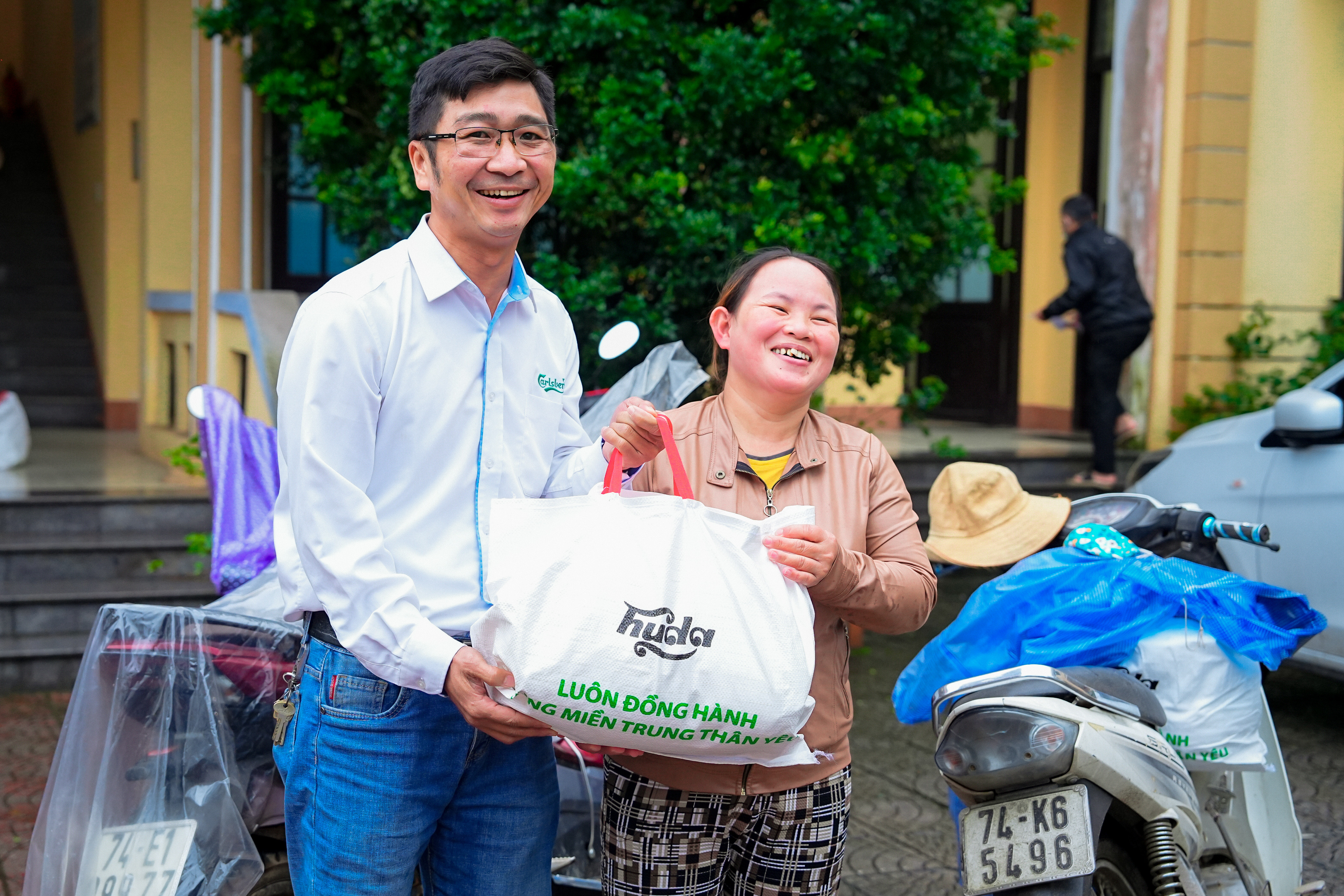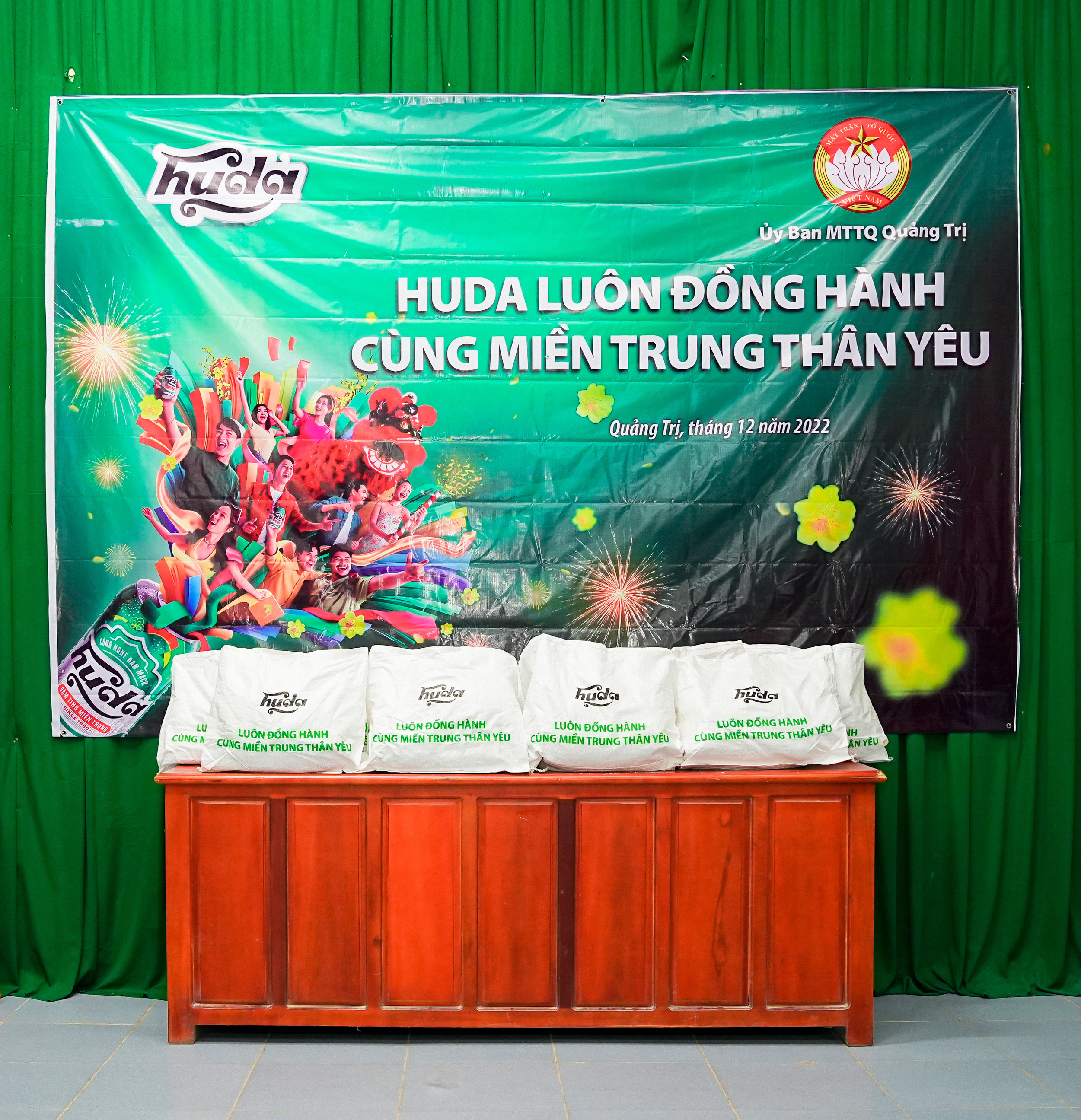Theo đó, từ ngày 19 - 28/12/2022, những phần quà “đậm tình” bao gồm gạo, dầu ăn, nước mắm, gạo nếp, bánh, kẹo, trà mạn đã và đang được đại diện Huda trao tận tay tới bà con miền Trung tại các tỉnh Thanh Hóa, Nghệ An, Hà Tĩnh, Quảng Bình, Quảng Trị, Thừa Thiên - Huế, Đà Nẵng, Quảng Nam và Quảng Ngãi.