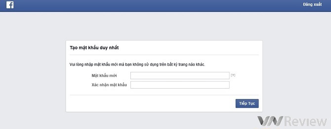 Bước 5: Bước đầu tiên Facebook khuyến nghị người dùng nên làm đó là tạo mật khẩu mới và nhấn Tiếp Tục.