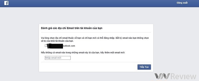 Bước 6: Bước tiếp theo Facebook hướng dẫn người dùng chọn lựa email cũ để đăng nhập tài khoản hoặc thêm một tài khoản email khác để đăng nhập.