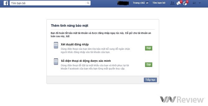 Bước 7: Về cơ bản, tài khoản Facebook của người dùng đã được khôi phục. Tiếp theo người dùng có thể bật/tắt các tính năng bảo mật khác được Facebook khuyến nghị như xét duyệt đăng nhập bằng điện thoại hoặc dùng điện thoại để đặt lại mật khẩu và khôi phục tài khoản Facebook nếu bị mất quyền truy cập.