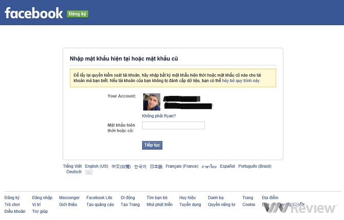 Bước 4: Bước tiếp theo sau khi nhập mật khẩu, Facebook sẽ tiến hành cung cấp các cách thức để người dùng nhanh chóng lấy lại được tài khoản. Bạn cần nhấn Tiếp Tục để thực hiện quá trình.