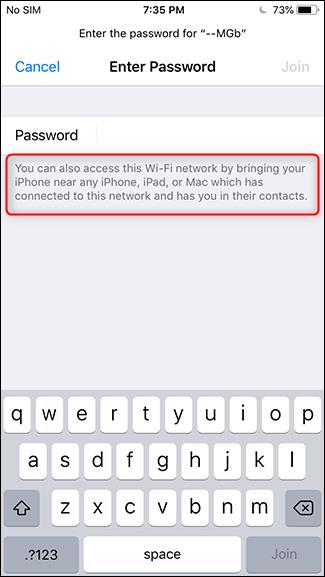 Mở khoá thiết bị iOS đã kết nối vào mạng Wi-Fi và đặt nó bên cạnh thiết bị mà bạn đang cố kết nói vào mạng. Thiết bị đã kết nối sẽ hiện lên một thông báo, hỏi bạn có muốn chia sẻ mật khẩu Wi-Fi cho máy kia hay không. Chọn nút "Share Password" (Chia sẻ mật khẩu), và thiết bị còn lại sẽ ngay lập tức nhận được mật khẩu Wi-Fi và bắt đầu kết nối.