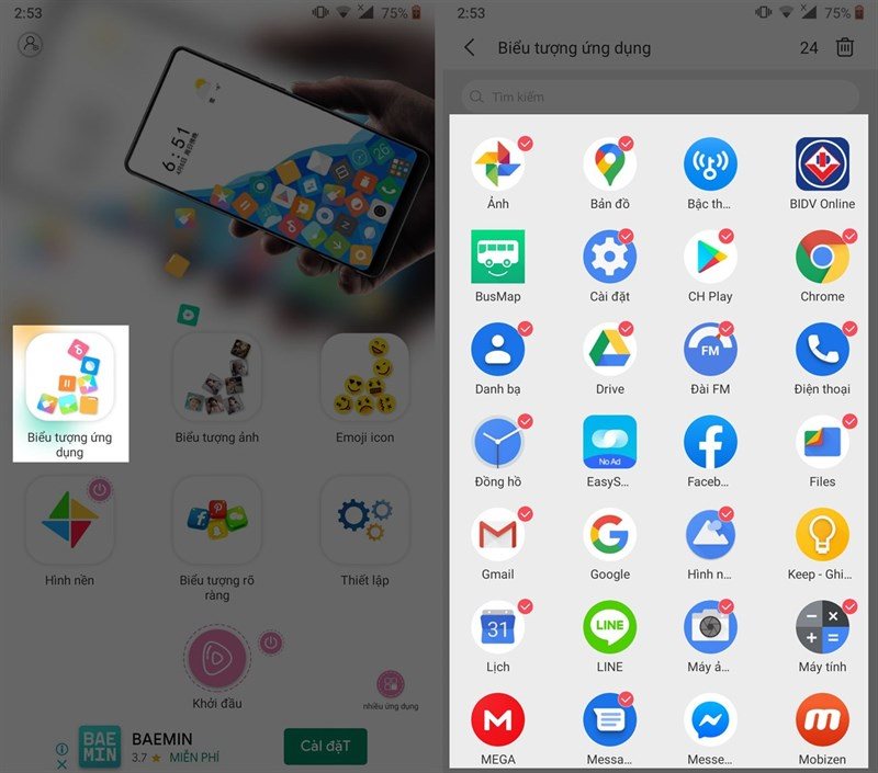 - Tùy chọn icon xuất hiện ngoài màn hình chính