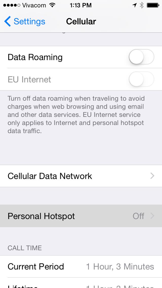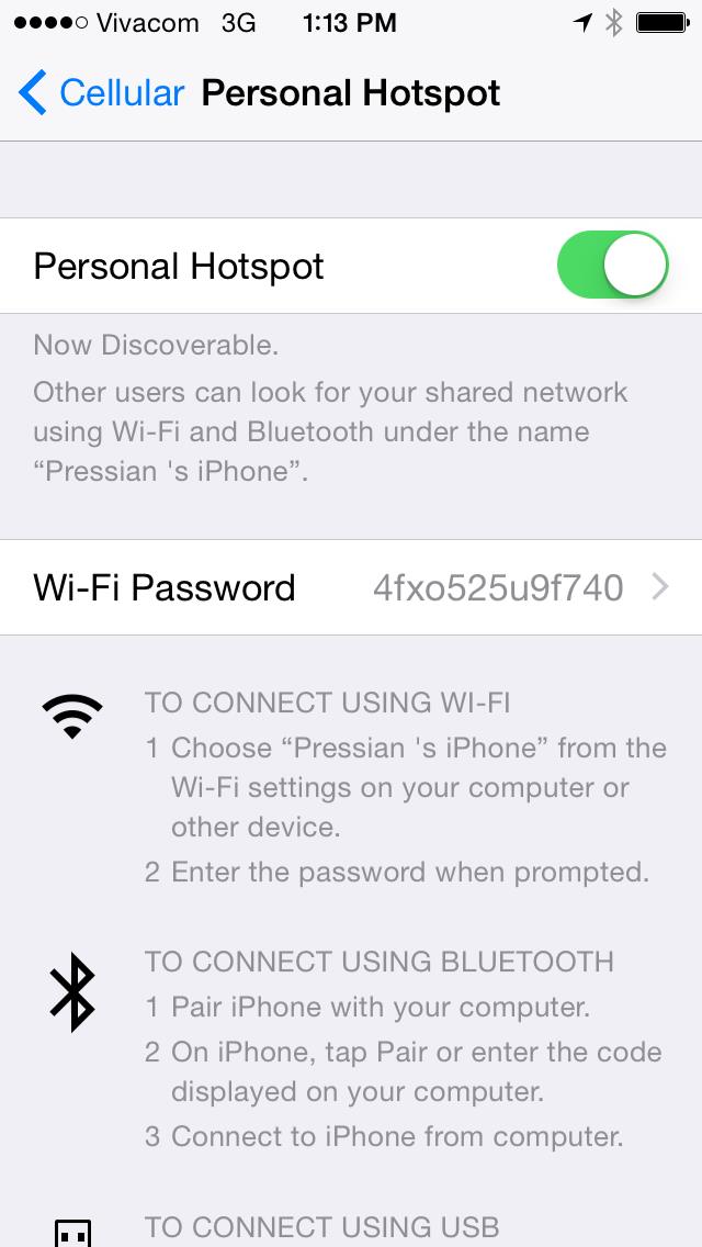 Bước 7: Giao diện khi bật Personal Hotspot trong iOS 8