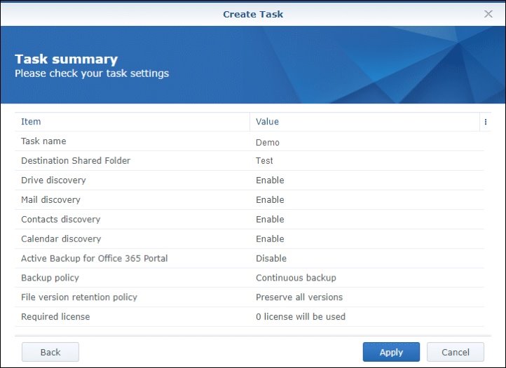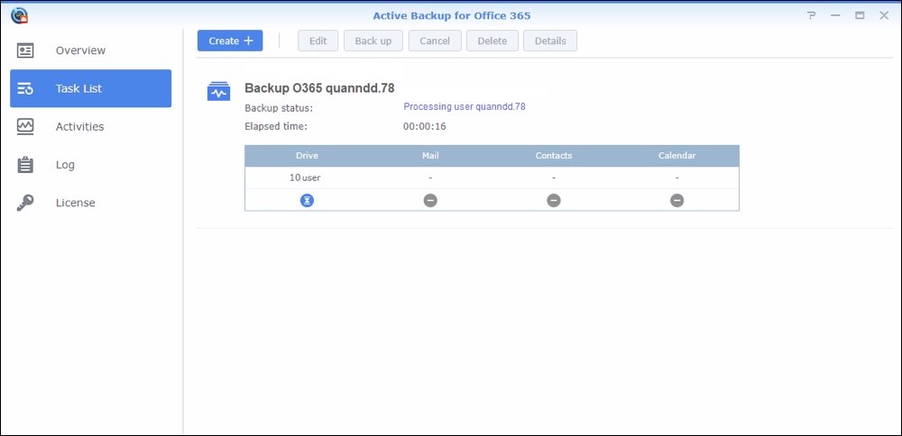 Active Backup for Office 365 cung cấp giao diện tập trung giúp doanh nghiệp quản lý dữ liệu bằng giải pháp sao lưu tại chỗ dữ liệu trong OneDrive for Business, email, danh bạ và lịch từ Office 365. Khi Internet bị gián đoạn, bạn vẫn có thể truy cập vào dữ liệu được lưu offline bên trong ổ NAS, dữ liệu có thể được xuất ra những định dạng phù hợp để bạn sử dụng.