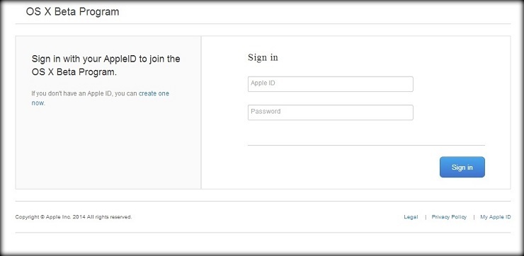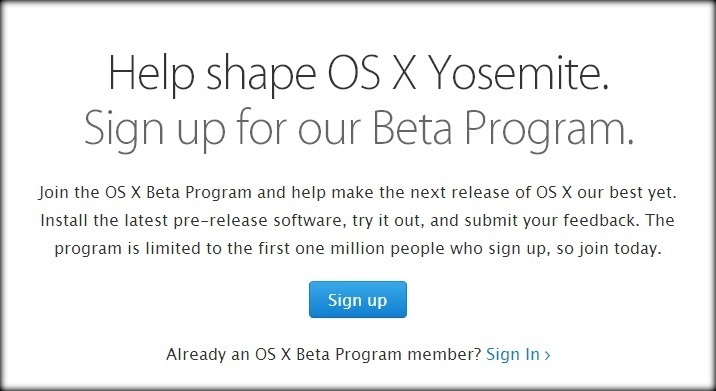 Bước 1: Vào website OS X Beta Seed Program tại đây và click vào Sign Up.
