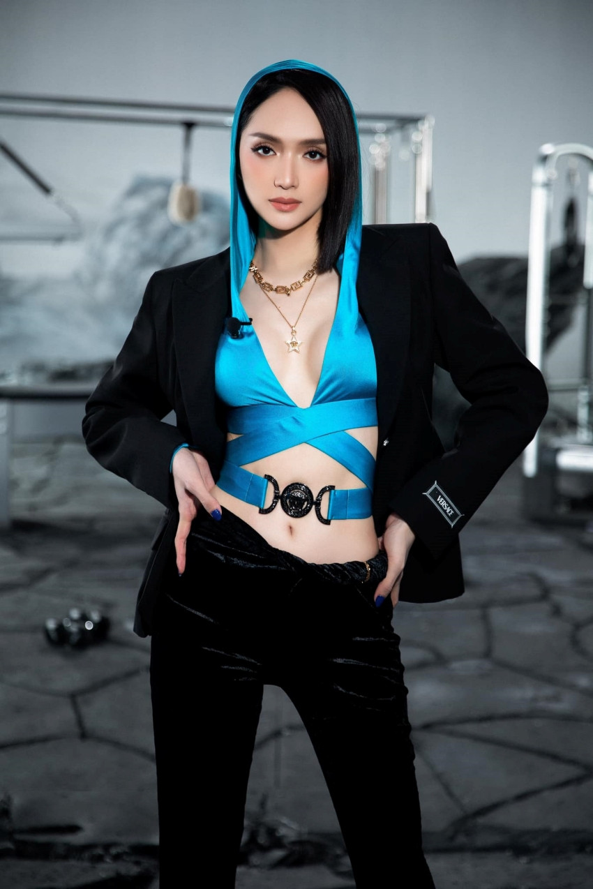 Hương Giang quyền lực với áo mũ trùm và suit đen, Võ Hoàng Yến phóng khoáng với thiết kế cắt xẻ ôm sát.