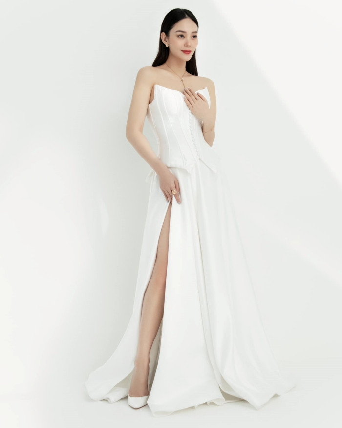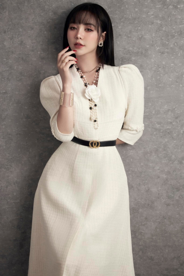 Hương Giang chọn kiểu tóc vểnh cùng băng đô cổ điển để kết hợp với váy cocktail màu đỏ, dáng ngắn. Đôi boots giúp trang phục thêm mới mẻ và ấn tượng.Quỳnh Kool đẹp sang chảnh trong chiếc váy tweed màu trắng kem có thiết kế cổ V, tay bồng đơn giản được phối cùng dây chuyền và hoa cài đen - trắng và loạt phụ kiện ton-sur-ton.Hà Hồ (trái) và Ninh Dương Lan Ngọc đọ sắc khi cùng diện trang phục gam màu đen làm chủ đạo. Nếu Hà Hồ đằm thắm với váy bèo nhún đính hoa cùng trang sức đắt đỏ, nữ diễn viên 9X lại đẹp gợi cảm khi chọn áo hai dây cut xẻ màu nude kết hợp cùng quần loe khoe đôi chân dài.Tiểu Vy ngọt ngào trong chiếc váy trắng đính hoa nổi với phần thân trên được cách điệu theo hình trái tim. Nàng hậu chọn layout hồng - cam, phối cùng trang sức màu gold và sandals gắn nơ điệu đà.Đỗ Hà kiêu kỳ khi chọn váy trắng ngọc trai có thiết kế vai lệch và tà xẻ cao khoe đôi chân dài thương hiệu. Người đẹp Thanh Hóa để tóc thẳng nhẹ nhàng, chọn bông tai đồng màu và giày cao gót đan dây.Hà Nhi tạo dáng trong set đồ vải gân màu trắng, gồm áo yếm cách điệu tôn lên bờ vai thon và chân váy bút chì ôm sát. Nữ ca sĩ phối cùng giày trắng đế lớn để vóc dáng thêm thanh mảnh.Cùng sắc trắng, Minh Hằng lại yêu kiều hơn với áo corset cúp ngực và chân váy xòe mềm mại. Nữ diễn viên để tóc rẽ ngôi, chọn trang sức dáng mảnh và giày trắng tạo nên vẻ dịu dàng.Tú Vi chọn thiết kế màu trắng có phần cổ vest cách tân được phối ren tinh tế cùng phần chân váy bồng xẻ 2 bên lạ mắt khi tham dự sự kiện. Cô phối cùng túi xách nữ tính và nơ cài tóc.Hoa hậu Thùy Tiên xuống phố với váy jean thời thượng cắt xẻ vừa phải và hông buộc tay áo cá tính. Cô phối cùng túi xách màu nâu và boots da ngang đùi, để tóc buộc cao trẻ trung và bông tai bắt mắt.