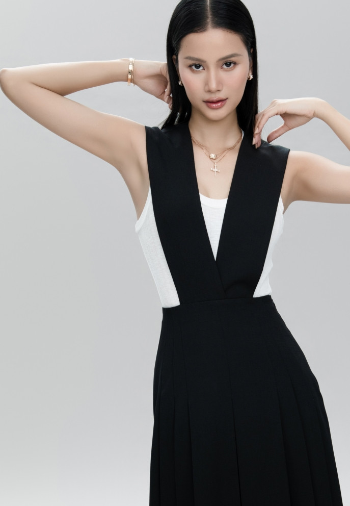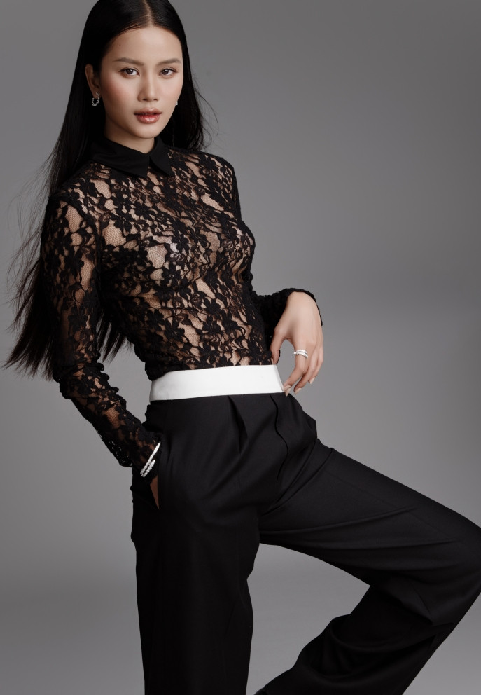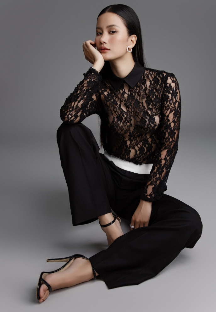 Các thiết kế cũng được chăm chút tỉ mỉ như dập ly thủ công, các đường cắt đầy ngẫu hứng. Sự kết hợp giữa tông màu đen với chất liệu ren quyến rũ, những khoảng hở vừa phải tạo sự quyến rũ, gợi cảm chừng mực. Tông màu trắng đối lập cũng góp phần tạo nét cá tính cho tổng thể trang phục.