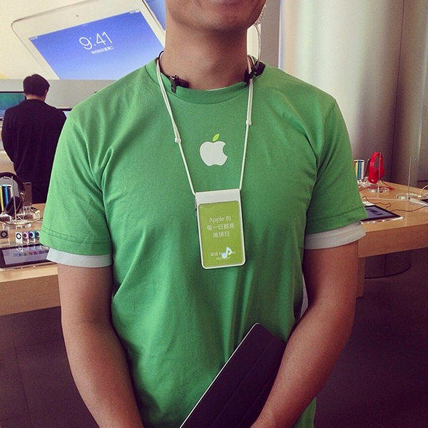 Trong bức ảnh chụp Apple Store Hồng Kông, chiếc lá trong logo Apple cũng chuyển sang màu xanh lá cây, còn phần quả giữ màu trắng tiêu chuẩn.