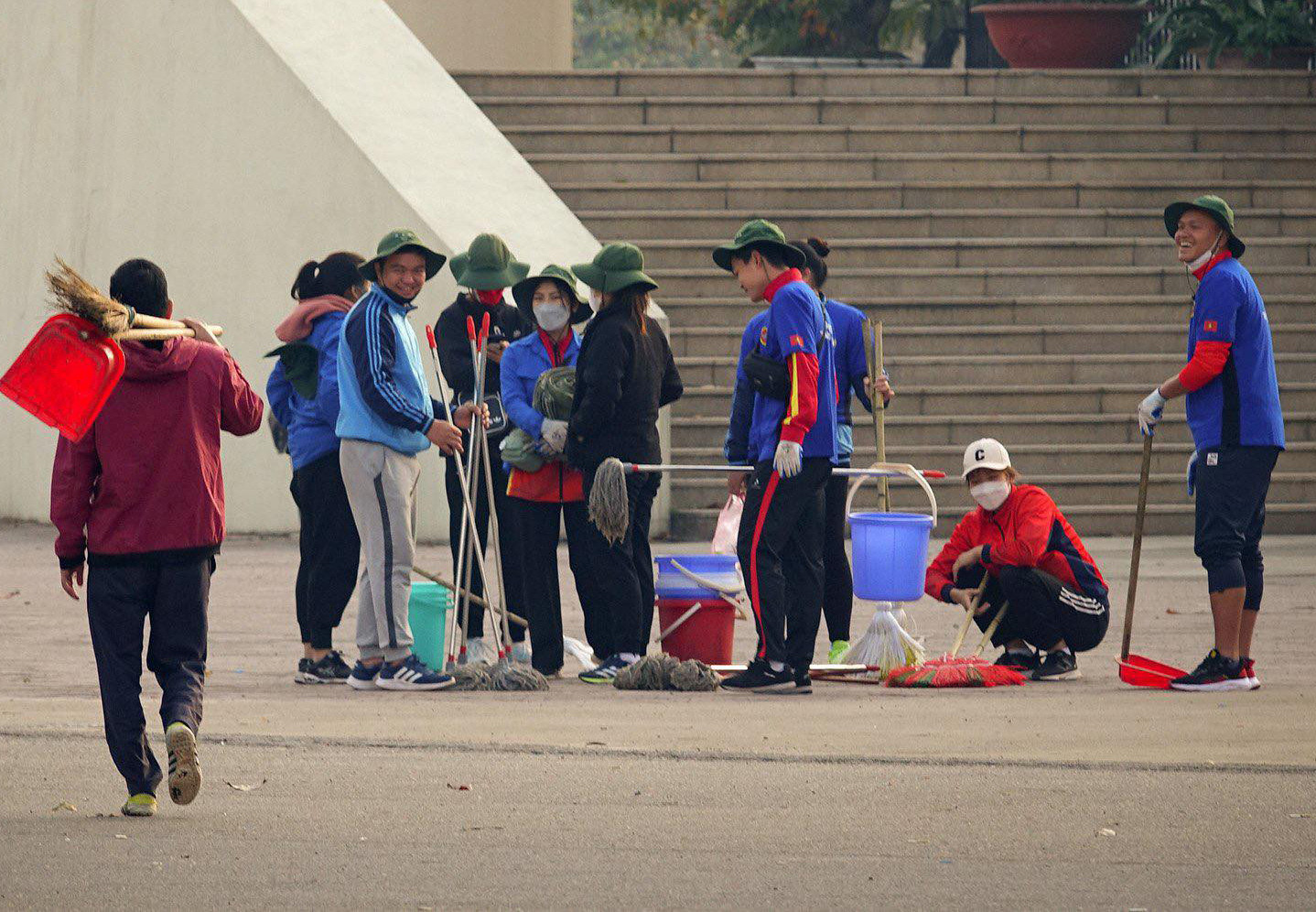 Sáng 7/1, hơn 100 sinh viên trường Đại học TDTT Bắc Ninh có mặt tại sân Mỹ Đình để tiến hành công tác vệ sinh, chuẩn bị cho trận bán kết lượt về AFF Cup 2022 giữa tuyển Việt Nam vs Indonesia.