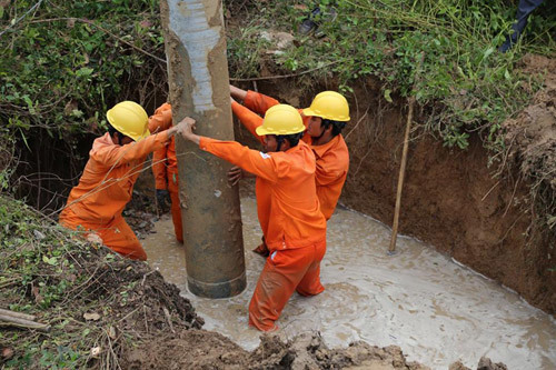 Thợ điện miền Trung đang khôi phục lưới điện sau bão số 12