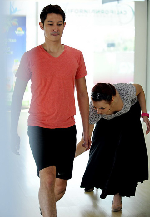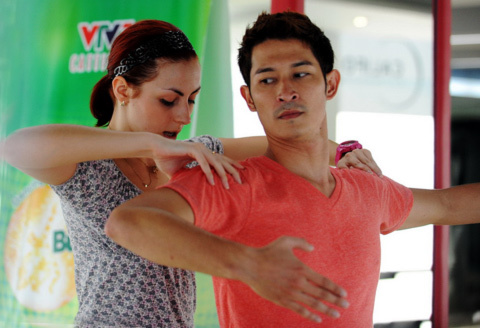 Trong các buổi tập, thấy anh bị nữ vũ công xinh đẹp “vật” đến đờ