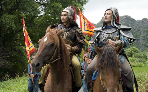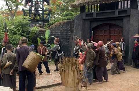 Một cảnh quay của "Huyền sử thiên đô" tại phim trường Cổ Loa