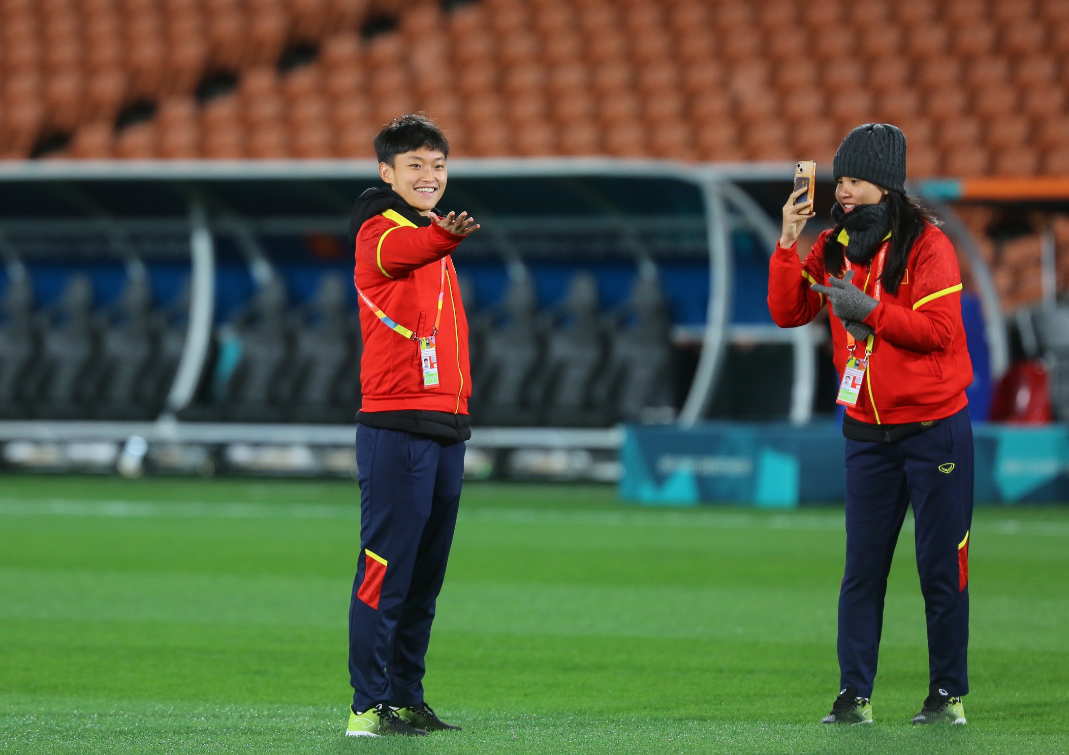 Trong buổi họp báo trước trận đấu, tiền đạo Huỳnh Như chia sẻ câu chuyện rất vui: "Thực sự từ lúc lá thăm may rủi đưa Việt Nam chung bảng đấu với Bồ Đào Nha, bầu không khí tại Lank FC rất thú vị. Các đồng đội còn đùa với tôi rằng, nếu Huỳnh Như ghi bàn vào lưới Bồ Đào Nha thì mọi người sẽ không cho tôi quay lại CLB nữa. Nhưng sẽ rất tuyệt vời nếu tôi ghi được bàn vào lưới Bồ Đào Nha". "Không riêng gì tôi mà các cầu thủ nữ Việt Nam đều khát khao ghi bàn. Lúc này, 1 bàn cũng là rất quý giá với tuyển nữ Việt Nam. Tất nhiên, mong muốn của tôi là tuyển nữ Việt Nam có thể giành chiến thắng. Tôi muốn tạo được niềm vui, sự hứng khởi. Tôi sẽ nỗ lực hết sức thi đấu. Khoảng thời gian chơi bóng ở Bồ Đào Nha vừa qua rất tuyệt vời. Điều đó sẽ để lại cho tôi nhiều kỷ niệm, cũng như bài học sau này để tôi có thể trở về cống hiến cho quê hương Việt Nam”, Huỳnh Như thể hiện sự quyết tâm trước trận gặp Bồ Đào Nha.Chiều 26/7, tuyển nữ Việt Nam được làm quen với sân thi đấu chính thức Waikato trước trận gặp Bồ Đào Nha.Các cầu thủ đều tran thủ chụp ảnh, chơi đùa với nhau trên sân thi đấu chính thức của World Cup 2023.Ở trận gặp tuyển nữ Mỹ, trung vệ Chương Thị Kiều có khoảng 20 "làm nóng". Cô đang sẵn sàng vào sân ở trận gặp Bồ Đào Nha.Thủ thành Kim Thanh chơi rất ấn tượng ở trận gặp Mỹ và gần như chắc chắn tiếp tục bắt chính ở cuộc đối đầu với Bồ Đào Nha.Tiền đạo trẻ Vũ Thị Hoa tạo dáng trên sân Waikato.HLV Mai Đức Chung khẳng định tuyển nữ Việt Nam có sự chuẩn bị tốt nhất và hy vọng có được bàn thắng, thậm chí chiến thắng trước Bồ Đào Nha.Nếu làm được điều đó, tuyển nữ Việt Nam sẽ ghi dấu lịch sử ở sân chơi World Cup.Trận tuyển nữ Việt Nam gặp Bồ Đào Nha diễn ra vào lúc 14h30 ngày 27/7. Thầy trò HLV Mai Đức đều sẵn sàng chơi một trận hết sức.